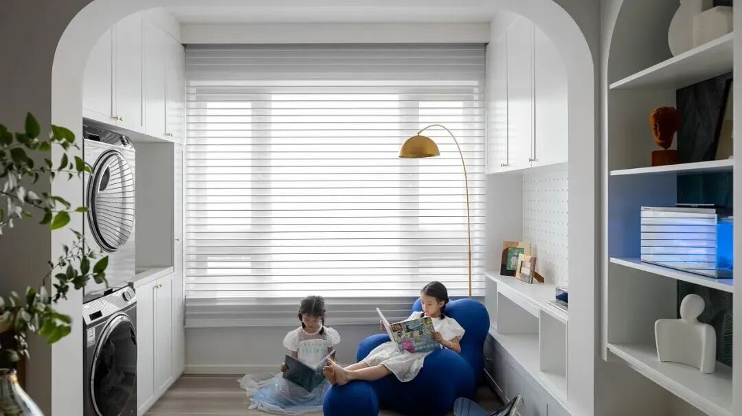 或是安装极窄系列推拉窗,线条简练,通透感十足,产品全隐于边框,可实现50%的通风量,满足全景视野享受,孩子可在疲倦时极目远眺,放松双眼。